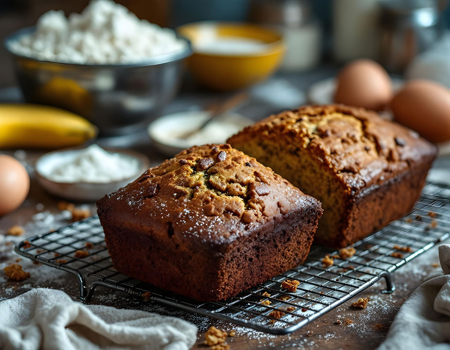 - Sastojci: 3 zrele banane, 2 šolje integralnog brašna, 1/4 šolje meda, 1/2 šolje jogurta, 1 kašičica praška za pecivo, prstohvat cimeta.